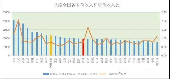 一个省市的房价高不高,一般看房价收入比。即,以当期房价除以收入。该值高的话,说明房价较高。这是一个相对指标,具有可比性。全国平均值为0.79,最高的前3名分别是北京(2.07)、海南(1.64)和上海(1.26),最低的分别是湖南(0.54)、贵州(0.6)和重庆(0.63)。江西列第20位,为0.74,低于全国平均水平。这至少反映江西的房价跟全国其他省市比,不算高。当然,这是就均值而言,但对购房者而言,各人的感受不一样。
