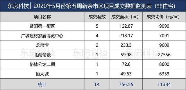 东房科技2020年5月份第五周新余市区项目成交数据监测表(非住宅),为你公布如下: