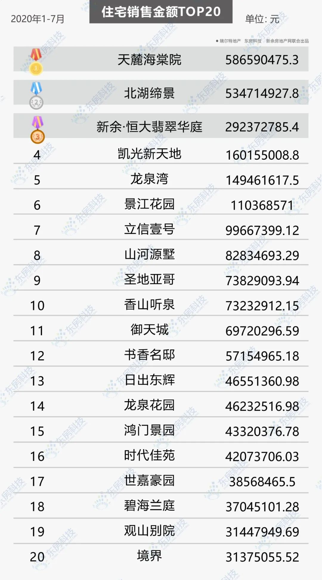 东房出品 ▏2020年1-7月新余楼市成交34亿!看看谁是销冠?