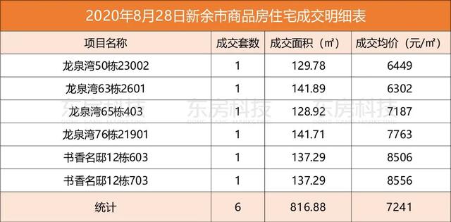 2020年8月28日新余中心城区各楼盘商品房住宅成交明细表,东房科技为你公布如下: