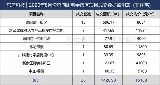 东房科技2020年8月份第四周新余市区项目成交数据监测表(非住宅),为你公布如下: