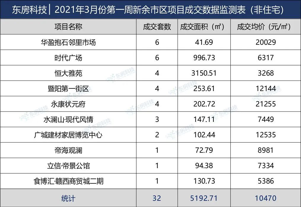 东房科技数据监控中心显示:2021年3月份第一周,新余市中心城区商品房网签445套,成交总面积57846.08㎡。