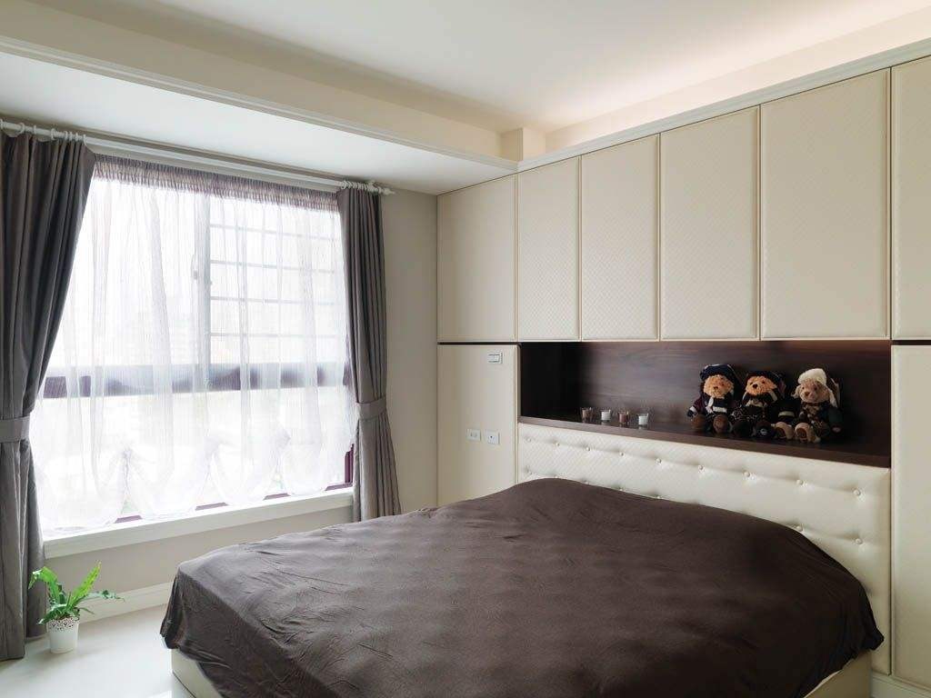 最后就是主卧了,从图中一眼就能看出,很简约的布置。白色的墙面、灰色的木质地板,搭配起来简约又不失自然。原木的床搭配格子图案的床上用品,与白色百叶衣柜门组合非常的协调,加上床头柜上摆放着美丽的鲜花,让卧房的色彩不那么单调。